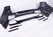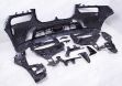 В комплект входит: передний бампер в сборе, передние фары, решетка радиатора (ноздри), расширители колесных арок, боковые пороги, задний бампер в сборе, насадки на глушитель, задние фонари, планки крышки багажника, комплект крепежа.