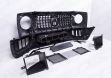 В комплект входит: передний бампер в сборе, решетка радиатора, маски фар, передние расширители колесных арок, подкрылки передние, клыки заднего бампера, комплект крепежа.